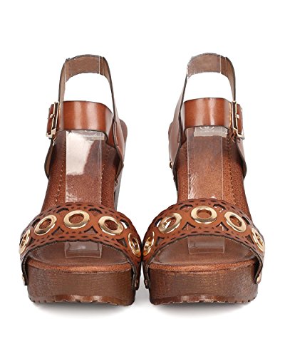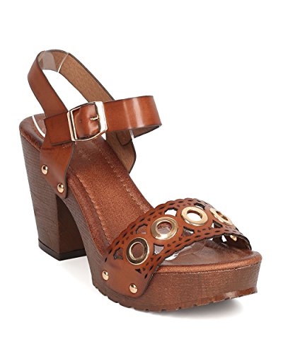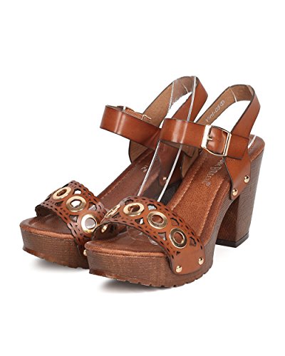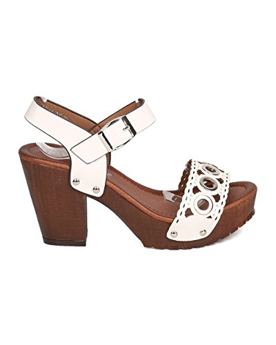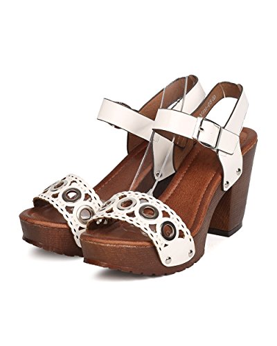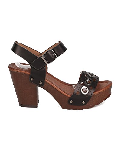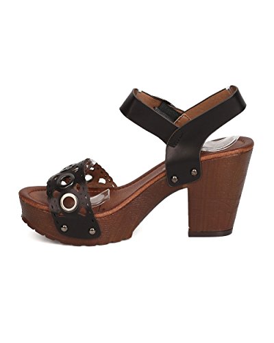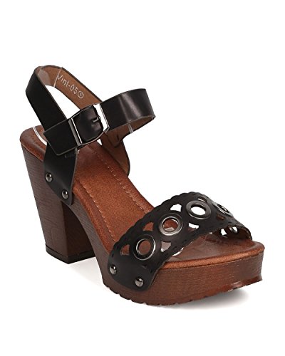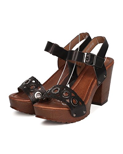 Product Description These wooden platforms are made with a leatherette upper, single band at vamp and perforated details. Also designed with a chunky heel and ankle strap with adjustable buckle closure. 0