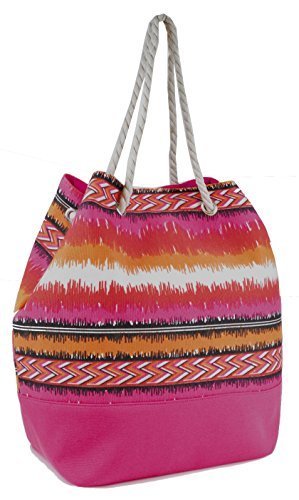 Product Description Large canvas shoulder bag with modern print, internal lining and drawstring soft rope straps. Magnetic snap fastening on top. Internal side pocket. Outer is 80% Polyester 20% Cotton. Lining is 100% Polyester. Measures approx 19.5" / 50cm long x 15.5" / 39cm high x 7.5" / 19cm wide at base. Ideal for the beach, shopping or casual use. Colours may vary slightly due to different monitor display settings. 0