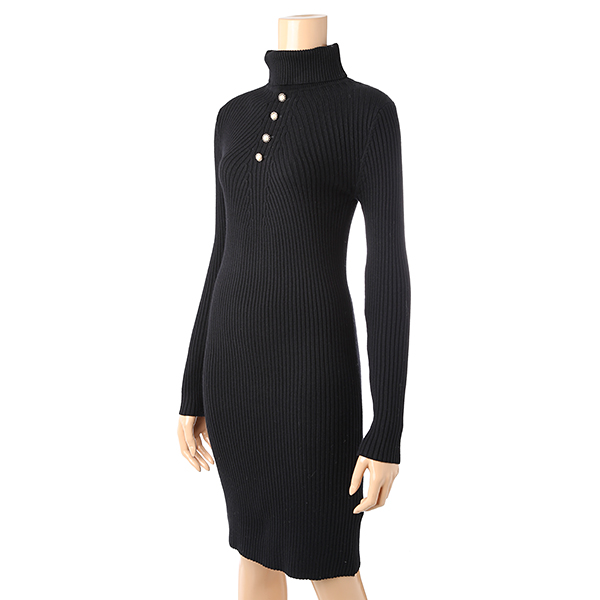 단추디테일이 고급스럽고 라인이 슬림한 골지 니트 원피스입니다.