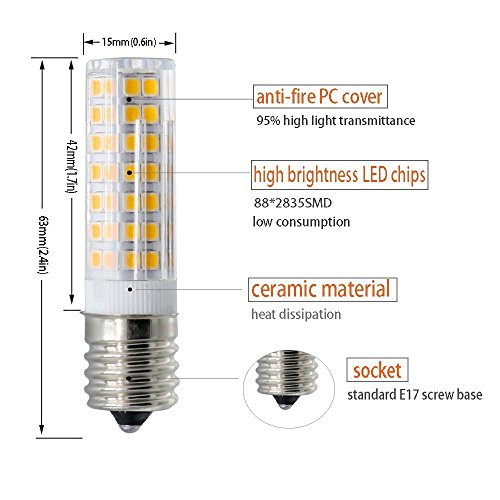 - ◆EYES PROTECTION: 88X2835SMD Led E17 Dimmable, High color rendering index, Ra>80. Its light is similar to that of natural light, so it doesn't make your eyes tired, it can show the real color of objects well. Daylight color temperature provides very bright, proper look to food when cooking.
