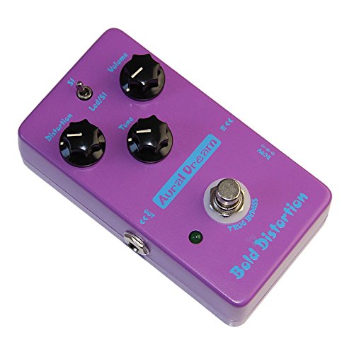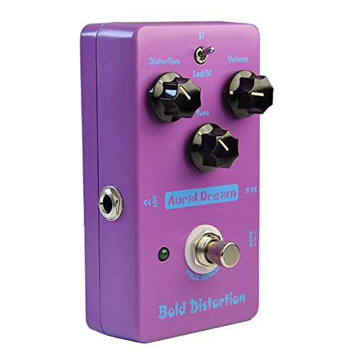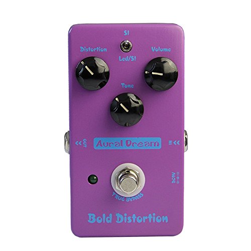 Studio : Aural Dream Publisher : Aural Dream Product Description Bold Distortion is a pedal effects of massive distortion and plump tone, which has a strong adjusting ability. It can make voiceless soundbox produce distored timbre of high power and hign gain soundbox. Three knobs of Bold Distortion: Distortion (distortion adjustment), Tone (tone control), Volume (volume control). The two-mode switch: Led/SI mode (the abbreviation of Light Emitting Diode/Silicon), belongs to light emitting diode and silicon tube clipping type, in which its distorted tone plays as strong low frequency and natural midfrequency. SI (the abbreviation of Silicon), belongs to silicon tube clipping mode that, in which its distorted tone plays as solid low frequency and deep midfrequency. In order to make our products durable and generate a timbre of good quality, we use PCB made of RF-4 material by plug-in processing, trying to let it play the needed timbre. Electronic parameter: Working voltage: DC9V(usual 8V-15V) working currency: 9mA Input impedance: 1M ohm Output impenance: 600 ohm Battery:self-provided Case material:aluminum alloy Packing size(mm): 160x93x70 Weight(g): 328