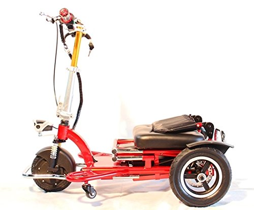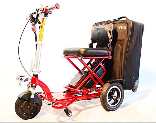 Studio : Enhance Mobility Publisher : Enhance Mobility Product Description The Triaxe Sport is a light, easy-to-fold electric scooter that has an amazing 35 mile range on a single charge and can go up to 12 mph with the standard Lithium Ion?Battery. The total weight of the Triaxe is only 55lbs and it can hold a capacity of 350lbs. Being a 3 wheel scooter, the Triaxe Sport has exceptional turning radius so handling this unit in tight spaces is simple and easy. The Triaxe Sport ?has a pull out luggage rack and LED front headlight. It offers front wheel drive and has adjustable handlebars. The Triaxe Sport comes with rear disk brakes and a main parking brake as standard. The comfortable cushioned seat is 13 inches wide with an optional 18 inch seat available. With the optional airline-friendly Travel Battery, the Triaxe Sport comes with a free soft case travel bag. Includes: LD battery Charger Basket 0