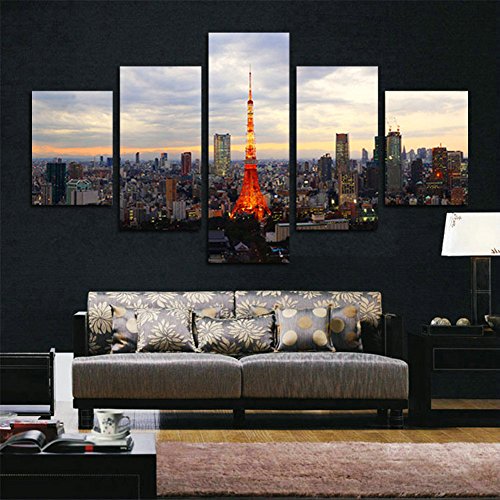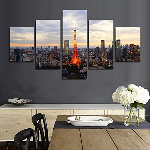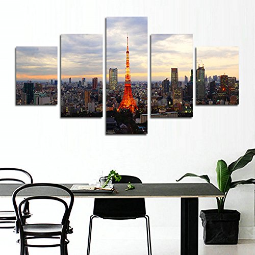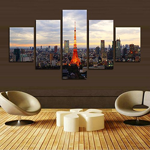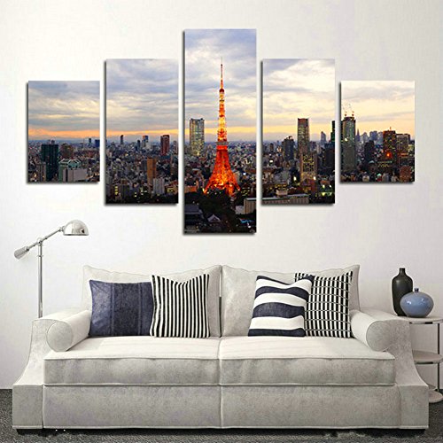 -. Title : H.COZY 5 Piece of Japan Tokyo Tower landscape P.R.Inting of the canvas painting to the oil on canvas large HD picture of art of the wall Home Living Room Decor(No Frame) Unframed far228 50 inch x30 inch