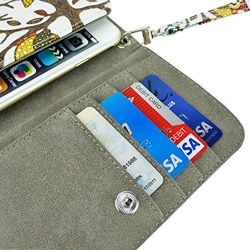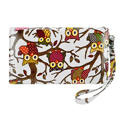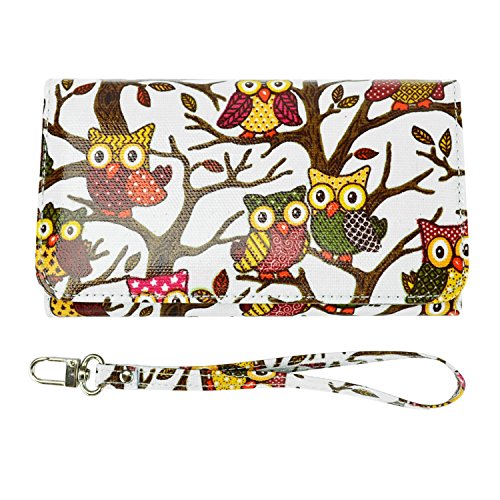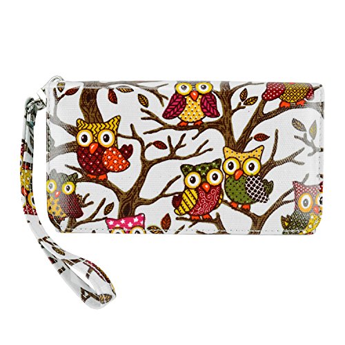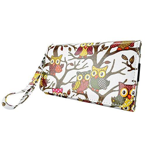 - Feature : Retro inspired owls on canvas make a cute statement to pair with any outfit. / Large size fits any phone up to 6.25 x 3.5 in. with or without another slim plastic case like the Apple iPhone 6 Plus and Samsung Galaxy S6 / S6 Edge / Note 4 / 3 / Carry the bare essentials! 4 easy access credit card slots, a cash pocket. / Wrist strap with polished details makes clutch into an essential and easy to carry wristlet. / Fits any phone up to 6.25 x 3.5 inches with or without another slim plastic case on.