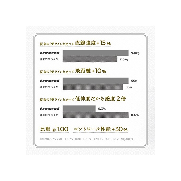 종래PE라인 보다 직선 강도15%업 저신 도에 감도2배 비거리 최대10%업