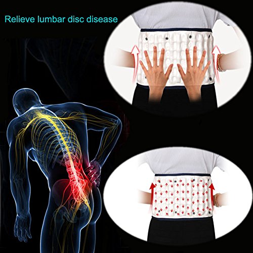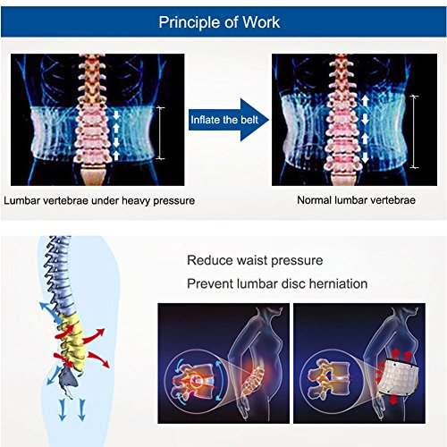 -. Feature : 【Applicable disorders】The waists belt applicable to patient who has waist pain problem and lumbar disease, especially lumbar disc herniation. / 【working P.R.Inciple】To rrelieve waist load and alleviate waist pain by inflating the waists belt to share the stress of the waist. / 【Manual inflation】This is an inflatable waists belt, with an inflatable tube, and built-in 29 H-type air columns. It can achieve all-round support of the waist, and open the lumbar intervertebral space in an instant. In the meantime, the inflatable design plays a very good protective effect on the waist. / 【size】The tile length of the waist belt is 44in(112cm), with a 9.84in (25cm) extension pad . If the original length of the waist belt is not long enough, this extension pad can be used to increase the length. For example , if your waistline is bigger than 51in (130cm), you can still use it, even though the original length is just 120cm. / 【packing list】1 * inflatable waists belt; 1 * pump; 1 * extension pad; 1 * English manual