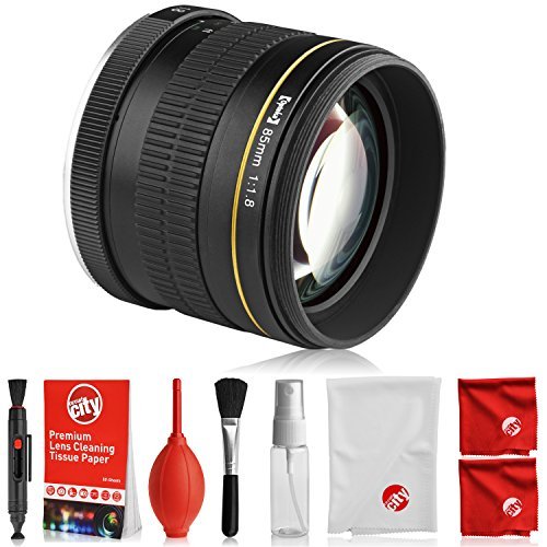 Opteka풀 프레임Aspherical망원85mm f / 1.8초상화 렌즈for Nikon DSLR과 떼내어 가능한 후드와 광학 클리닝 키트
