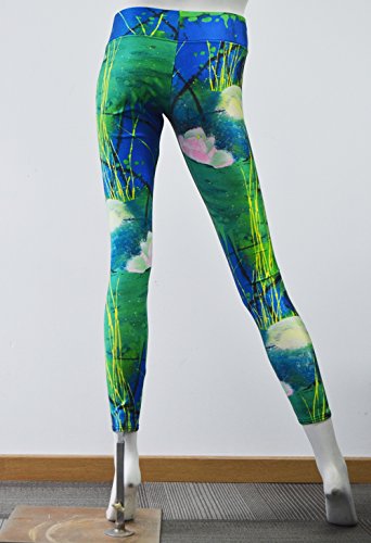 -. Binding : Apparel -. Brand : elsefour -. Color : Green Blue -. Department : womens -. Feature : Soft terry fabric technology helps you stay comfortably warm in cooler conditions without overheating / Side seams feel smooth against your skin and curve around your thigh for a natural / keep you dry and comfortable by wicking sweat away from your skin to the fabric's surface, where it quickly evaporates / Fabric: Body: 88% polyester/12% spandex / Easy wash, Machine washable and fadeless -. PackageQuantity : 1 -. ProductGroup : Apparel -. ProductTypeName : PANTS -. Size : Large -. Title : Elsefour Women's P.R.Inted High Waist Leggings Lotus Flower (Large)