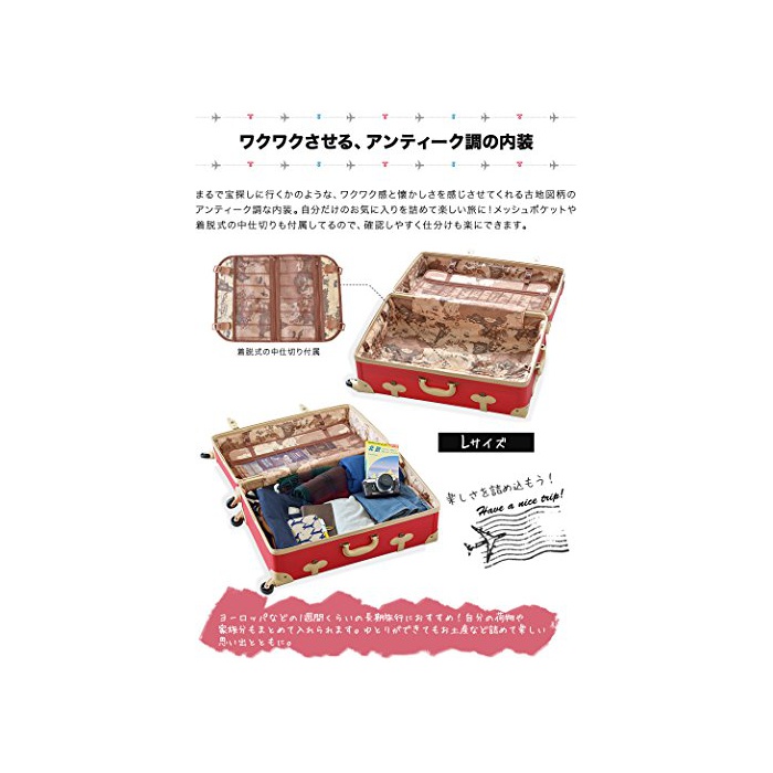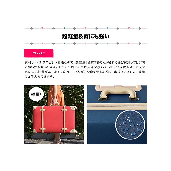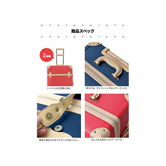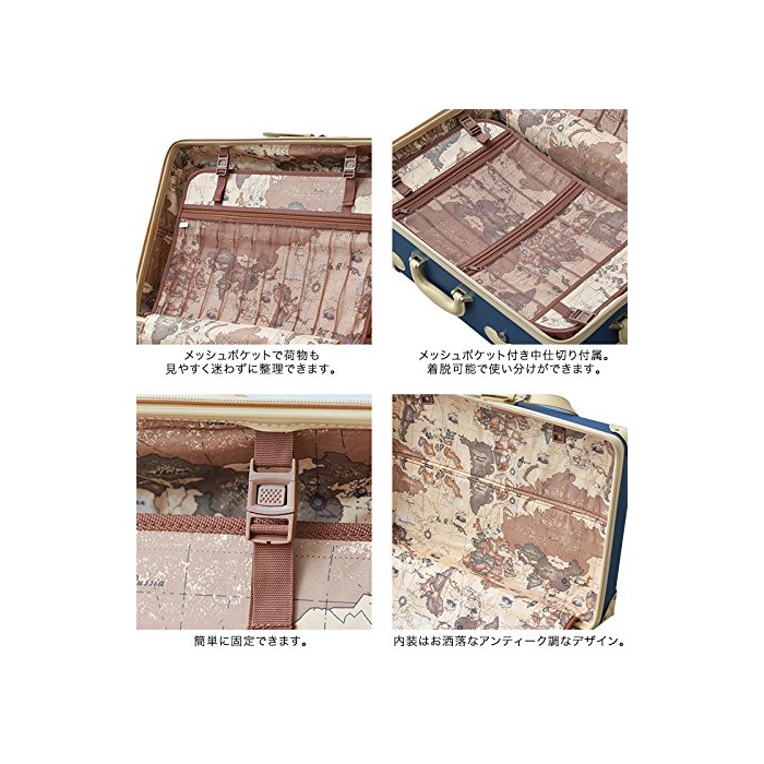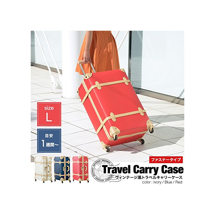 FIELDOOR 빈티지풍 트래블 캐리 케이스 슈트 케이스 L사이즈 (블루) 【패스너 타입】