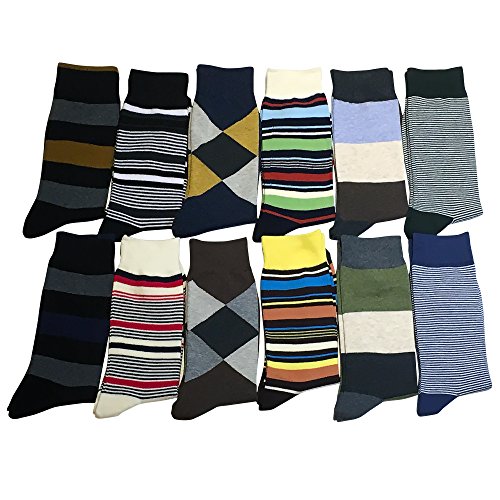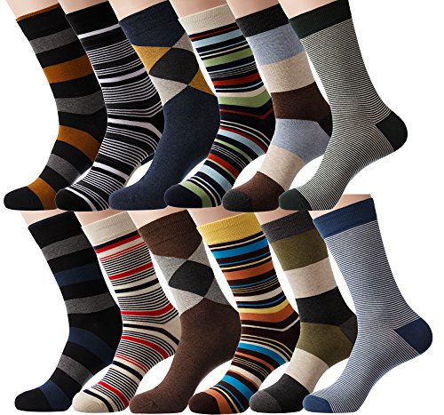 -. Binding : Apparel -. Brand : KONY -. Department : mens -. Feature : PREMIUM FABRICS : These dress socks are made of combed cotton 86%, polyester 10%, polyurethane 4%. Combed cotton is very soft, stretchable, breathable, durable socks and will keep your feet comfortable / 12 PACK COLORFUL DESIGN : These socks go well with both business attire and casual outfits. As they come in 12 different colors, you can match them with pretty much anything you have in your attire. Start your day right with a different pair of socks each day. Striped pattern socks will give you a strong stylish touch to your outfit. Argyle pattern socks will add a more classic look / FEATURES: Combed cotton is one of the most breathable fabrics around, and it is a natural fiber that absorbs moisture. If you've been having trouble with synthetic yarns like nylon/polyester socks, We strongly sest that you try high quality cotton socks! / SIZE & CARE : These socks come in a standard US SIZE that fit shoe sizes from US 8-12, so everyone can enjoy these premium high quality socks. Please do not iron them. We also recommend gentle hand wash with cold water and no tumble dry, for these socks may shrink at high temperature. Great quality socks require the proper care! / PERFECT GIFT IDEAS & 100% MONEY BACK GUARANTEE: Great socks often make great gifts. No need to look any further than KONY's premium quality men's dress socks for your beloved's birthday, anniversaries, Father's Day, Christmas, etc. If for some reason the gift receiver is not satisfied with our product, we guarantee a full refund -. IsAdultProduct : 0 -. ProductGroup : Apparel -. ProductTypeName : SOCKSHOSIERY -. Size : Medium -. Title : YourFeet Men’s 12 Pack Cotton Colorful Patterned Comfortable Dress Socks, Stripe Argyle Design Business Socks Best Gift