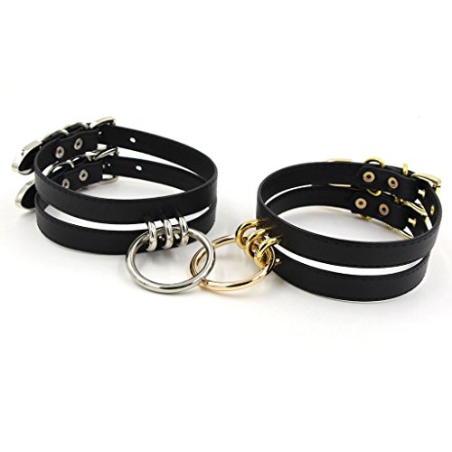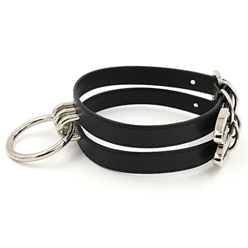 Double Leather Straps Choker, centered with o ring, with two delicate buckles which clasp at the back of the neck.