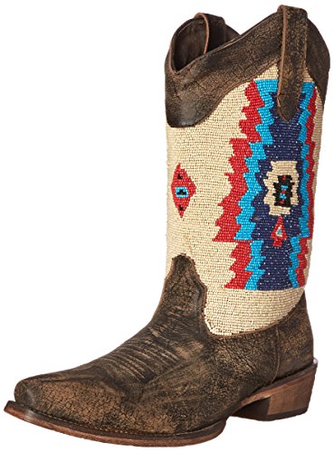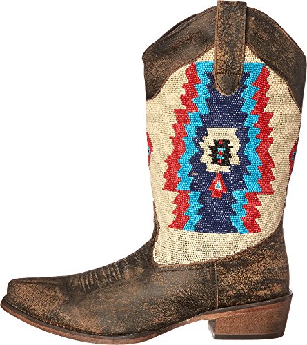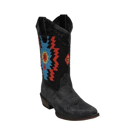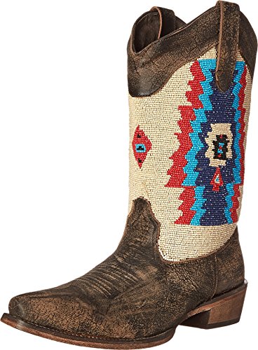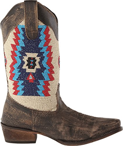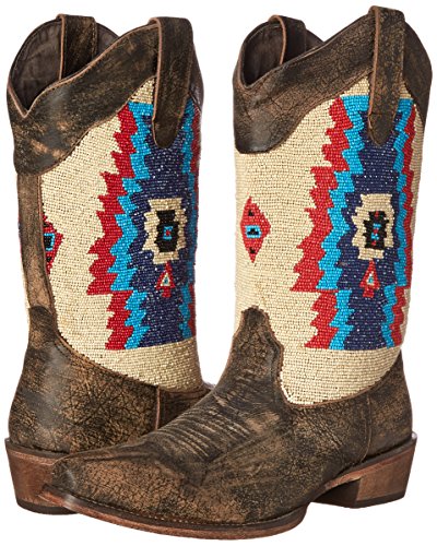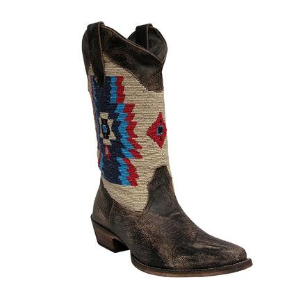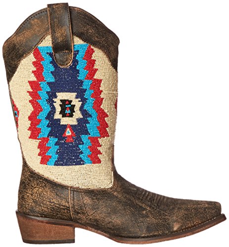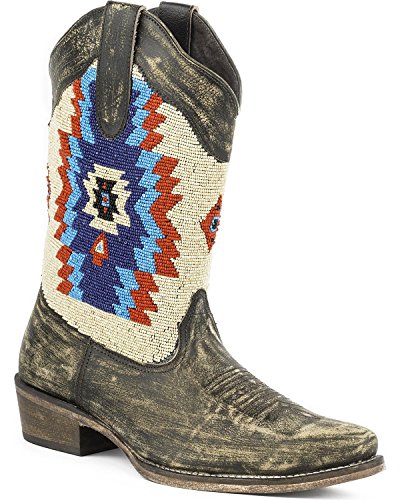 Studio : Roper Publisher : Roper Binding : Apparel Product Description Roper makes boots as charming as the cowgirl who wears them. These women's boots have a fashionable snip toe and a fabulous beaded Aztec design on the 12" shaft. All-day comfort will be yours with the padded insole, and these boots have a leather bottom. Single stitched welt. Cemented sole. Imported. 0