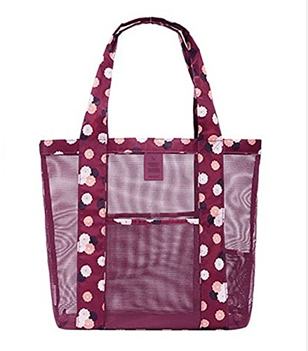 H&N Fashion Mesh Beach Bag Toy Tote Bag Large Capacity Grocery & Picnic Casual Tote Bag Purple Flower