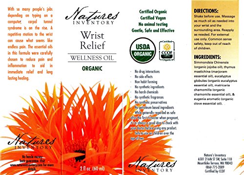 Ingredients include Simmondsia Chinensis (organic jojoba oil), thymus mastichina (marjoram essential oil), eucalyptus globules (organic eucalyptus essential oil), matricaria chamomilla (organic chamomile essential oil), and eugenia aromatica (organic clove essential oil).