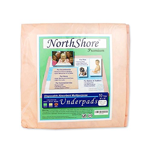 Studio : NorthShore Care Supply Publisher : NorthShore Care Supply Binding : Health and Beauty Product Description NorthShore Premium Super-Absorbent Underpads are both a great value and a premium product for incontinence and diaper changing. These Ultra Large underpads are latex-free with a diamond embossed quilt pattern. The extra-large 36 x 36 inch size provides all-night protection to reduce linen changes. Features a highly-absorbent embossed core with super absorbent polymers to lock away wetness. These underpads feature maximum absorption, making them great for nighttime use. (5 bags of 10) 0
