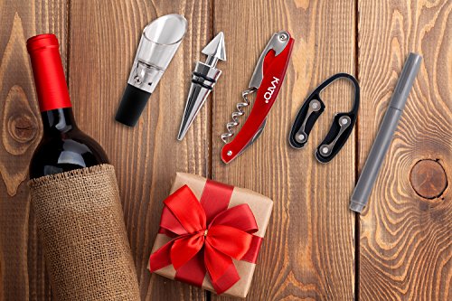 Features: ?Weight: about 15oz ?Package: red wine shaped gift box ?Includes a wine bottle corkscrew opener, wine stopper, foil cutter, aerator pourer, drip ring ?Great gift for friends. ?Perfect Christmas Thanksgiving Wedding Gift