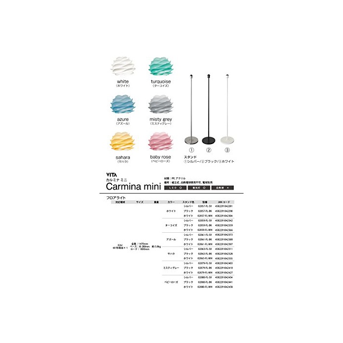 원본상품명: フロアライト 1 - カルミナ ミニ - Carmina mini フロア アズル(ホワイトベス) 【電球別】 VITA デンマク ELUX 02061-FL-WH 02061-FL-WH