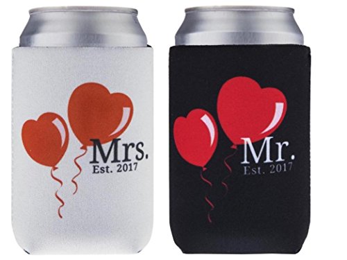 Mr and Mrs Est 2017 Can Cooler Set for Wedding Gifts Bridal Shower Gift Couples His Hers 2 Pack