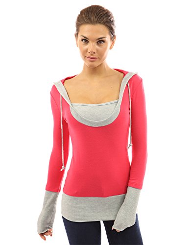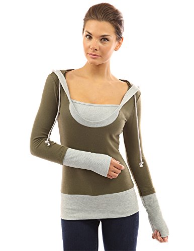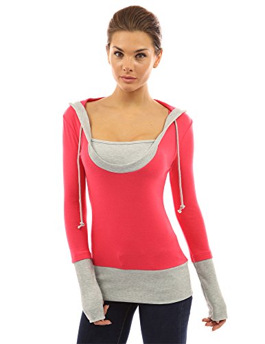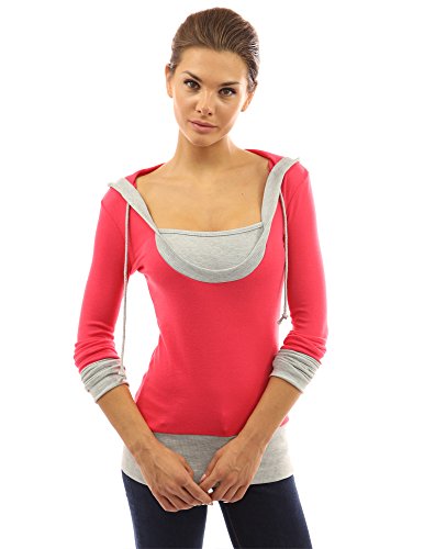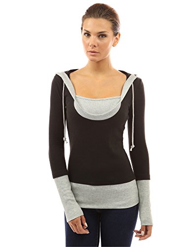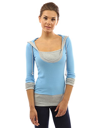 PattyBoutik Stunning 2-in-1 Hoodie Casual Blouse Top. Model in pictures is 5 feet 8 inches (173cm) tall wearing size S.