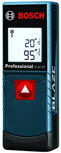 The Bosch BLAZE GLM 20 laser measure is an easier, faster and more accurate way to measure. It delivers laser precision technology and real-time measurement mode, taking instant and reliable measurements up to 65 Feet, so one person can size up the job in seconds. Square and compact by design, the BLAZE GLM 20 laser measure is ready for anywhere portability. It has a backlit display for easy viewing, even in dark areas. The laser measure is simple to operate, so users need only press one button to get accurate measurements to within 1/8-Inch and press again to hold the measurement.Feature