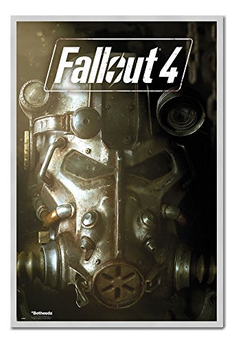 -. Title : Fallout 4 Mask Poster Magnetic Notice Board Silver Framed - 96.5 x 66 cms (Approx 38 x 26 inches)