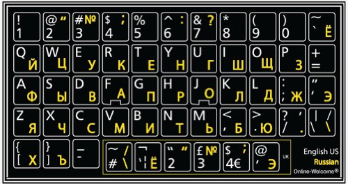 High-quality stickers for different keyboards Desktop, Laptop and Notebook such as: Sony, Toshiba, HP, Dell, Compaq, Panasonic, Acer, Gateway, Sharp, eMachines, Ashton Digital's Passport, Averatec, Systemax, IBM, Lenovo, NEC, Alienware, AST, Asus, Samsung, Cybertron, Apple, Macintosh Computers, Power Mac, Apple iBook, Apple PowerBook, Apple iMac etc. The Russian-English Alphabets is spread onto non-transparent black background - matt sticker, with yellow and white colors lettering. Stickers are made of high-quality matt vinyl, thickness - 80mkn, typographical method. Applying stickers on you keyboard properly once, and you can be aware that letters will stay for ever. Matt hue of the stickers guarantees complete absence of glare under different angels of lighting. Clear transparent background makes stickers invisible, and allows existing characters to show through. You do not have to think how to apply stickers. You'll know it intuitively. English letters located underneath each sticker - will accurately indicate buttons on with you will apply corresponding stickers. Applying possess doesn't take more than 10-15min. And you can immediately enjoy your brand-new Russian-English keyboard when making contacts with your relatives, friends and acquaintances. What you're offered now is high-quality stickers, intended to simplify you work and enjoy it while doing it on computer. OUR MOTTO IS - QUALITY! The product listed above is copyrighted, has been manufactured and distributed by Royal Galaxy Ltd. Usage of the images posted, distribution or resale has NOT been authorized by Royal Galaxy Ltd, and is in direct violation of its written terms. Federal law provides severe civil and criminal penalties for the unauthorized usage, distribution or resale of copyrighted product, its listings with all imaged posted. For all requests regarding usage of images of this product, its distribution and resale, please contact us by email.