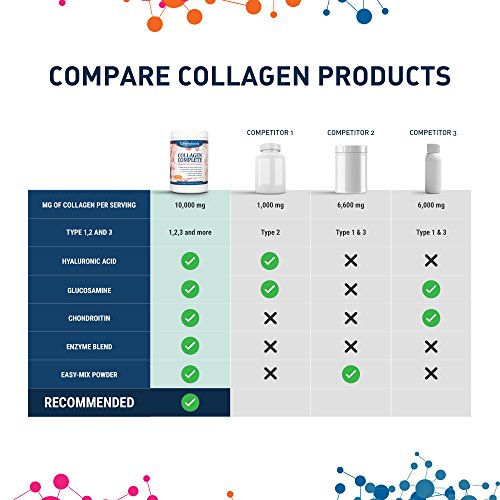 Collagen Powder (Supplement) Collagen Complete - 10,000mg of Hydrolyzed Collagen Types 1, 2 & 3, Hyaluronic Acid and More. Top-rated Among the Best Collagen Supplements. Hormone and Antibiotic free!
