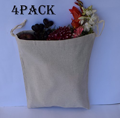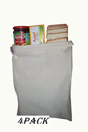 4 Pack Bread Bag -Made of Flax Cotton Fabric 13.5 x 17 Inch Each.Machine wash in cold water with mild detergent.