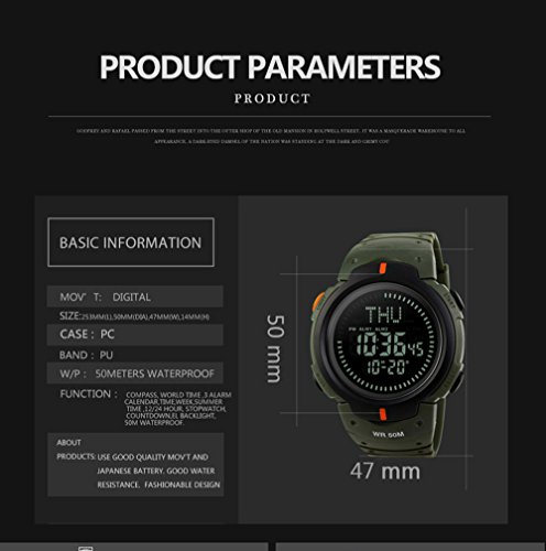 -. Title : Bounabay Men's Digital Multifunction Sports Watch with Compass