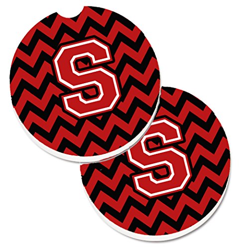 Caroline's Treasures Letter S Chevron black & Red Set of 2 Cup Holder Car Coasters CJ1047-SCARC, 2.56, Multicolor