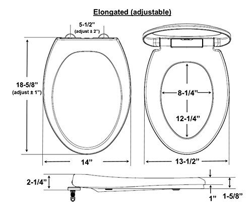 - FITS ALL TOILET BRANDS including Kohler, American Standard, Toto, Crane, Eljer, Caroma, etc. (Also fits toilets with non-standard mounting hole spacings 4-7 inches.) MEASURE YOUR TOILET and order ROUND or ELONGATED based on your toilet size (see diagrams at left on how to measure your toilet). NOTE: Not compatible with bidets that install between seat and bowl.