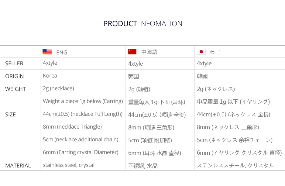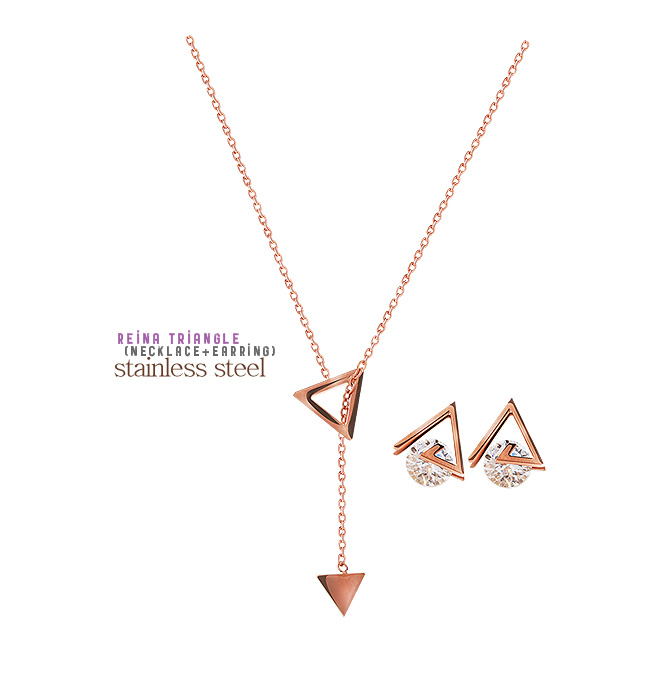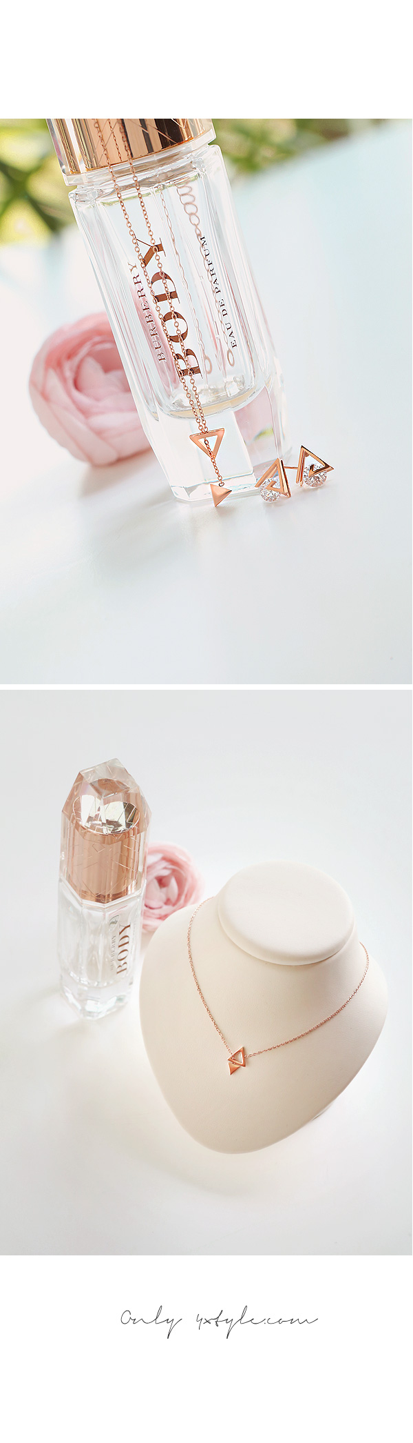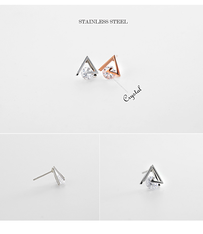귀걸이는 삼각형 모양에 크리스탈을 가미하여 군더더기 없는 심플함에