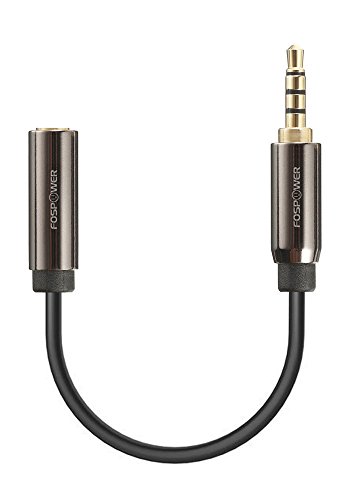 FosPower (4 Inch) 3.5mm Male to 3.5mm Female Auxiliary 4-Conductor TRRS Stereo Audio Extension Cable [24K Gold Plated Connectors] for Apple, Samsung, Motorola, HTC, Nokia, LG, Sony & More
