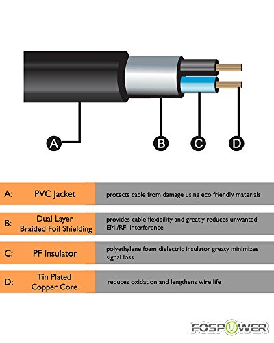 Copper braided and aluminum foil shielding provide cable flexibility and greatly reduce undesired EMI/RFI interference