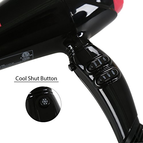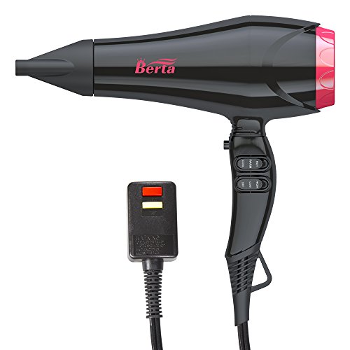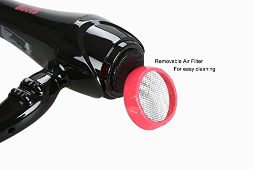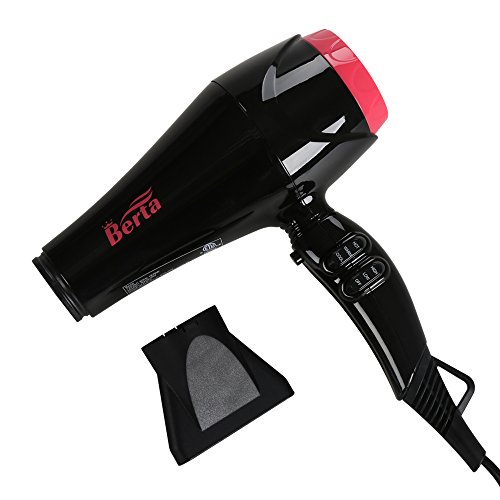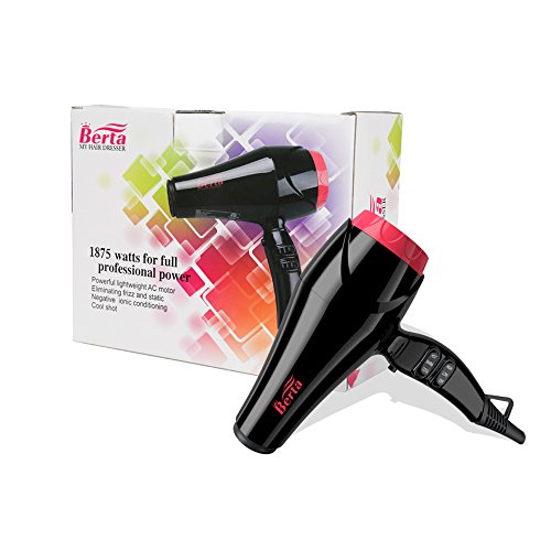 Berta Professional Ceramic Hair Dryer 1875W Negative Ionic Blow Dryer with 3 Heat 2 Speed settings Cool Botton Dryer, Black