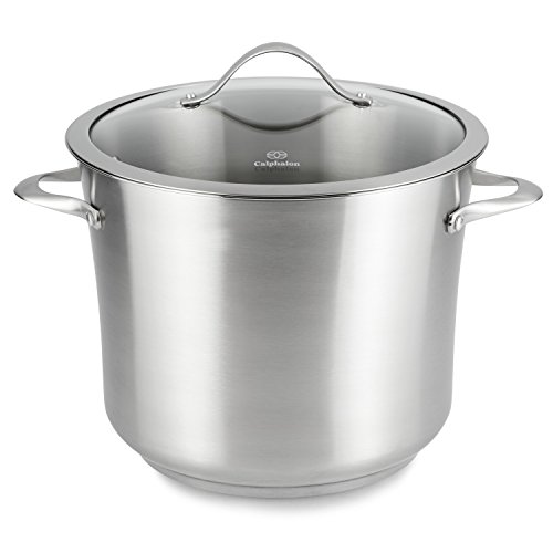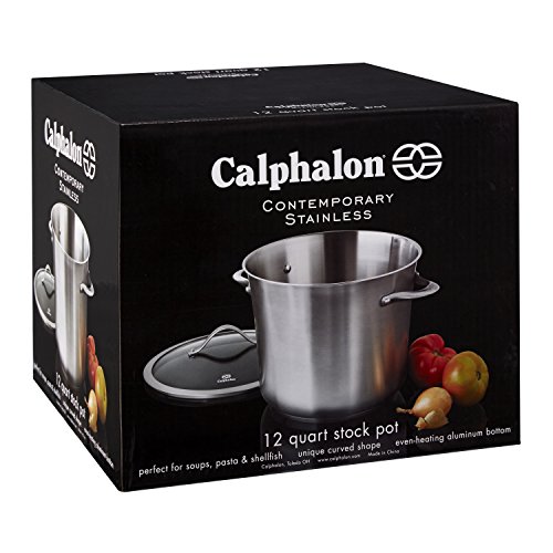 The large-capacity Calphalon Contemporary 12-qt. stock pot is ideal for stews, stock, chili and other moist-cooked dishes, plus this pan has plenty of room to boil water for pasta, shellfish, potatoes and more. The impact-bonded aluminum base is responsive to temperature changes, whether you’re slowly simmering or rapidly boiling. Calphalon’s stock pots are designed for easy cooking, easy cleanup and maximum performance.
