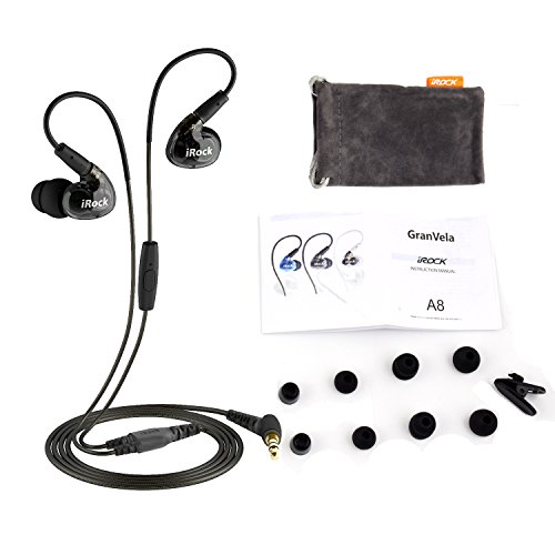 GranVela A8 Dual Driver In-Ear Headphones, Wired Stereo Sport Earbuds with Mic and Noise-isolating Earphones, Dynamic Crystal Clear Sound, Ergonomic Comfort-Fit for Running, Workout, GYM (Black)