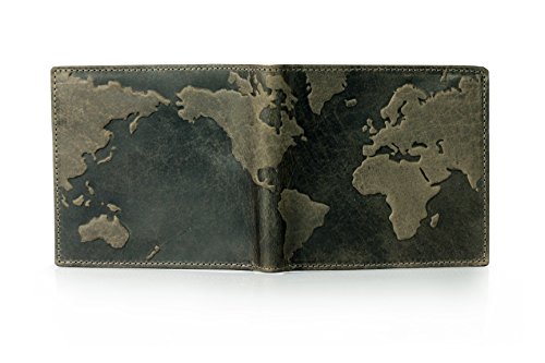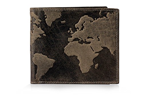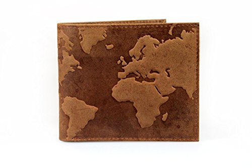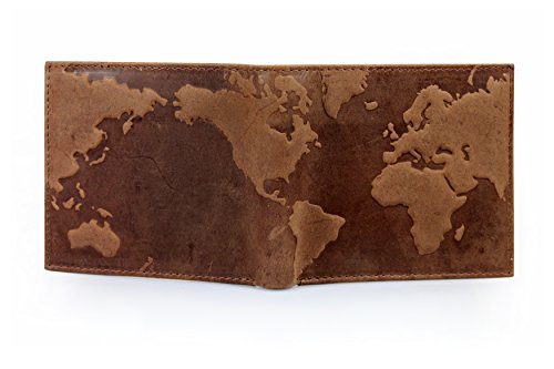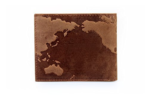 Product Description This is a totally unique mens distressed real leather wallet with a cool "map of the world" embossed design. This highly functional bifold wallet makes a perfect and original gift! measures 9cm x 11cm a perfect fit for your pocket 0