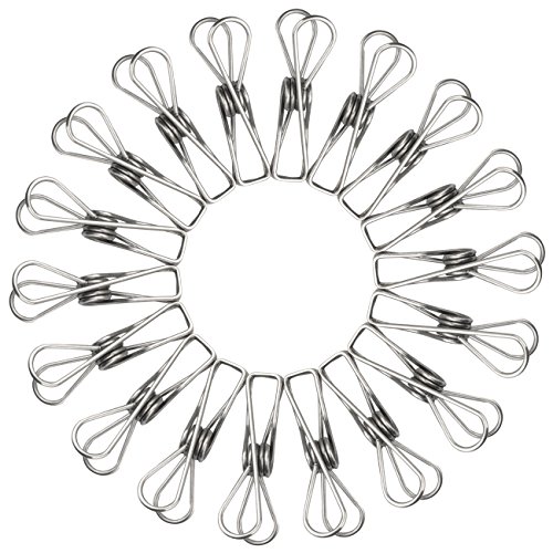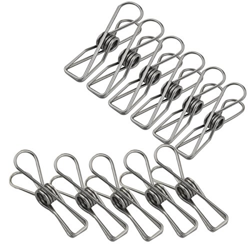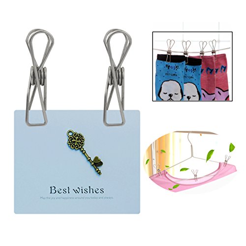 - USED IN MANY PLACES : They work perfectly for clothing in the laundry room or closet, towels in the bathroom, and for plastic bags in the kitchen. Use these stainless steel wire clothespin clamps anywhere in the home.