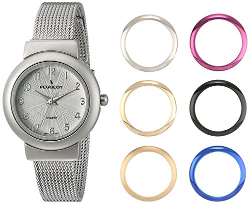 Peugeot Women's '7 Bezel Interchangeable' Quartz Metal and Stainless Steel Dress Watch, Color Silver-Toned (Model: 642)