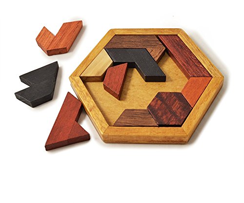 -. Title : KINGZHUO Hexagon Tangram Classic Chinese Handmade Wooden Puzzle for Children and Adults & Brain Teaser Disentanglement Puzzles