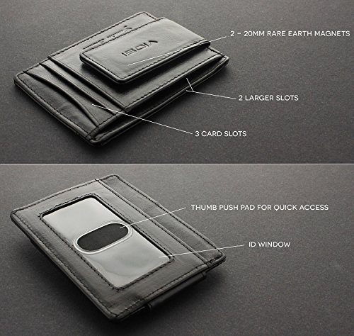 This product is ONLY sold by Newport Blvd. No other seller is authorized to sell this product. YOU WORK HARD FOR YOUR MONEY: That's why we use 2 - 20mm Rare Earth Magnets to hold on to your cash. We tested the rest and now you can buy the best. Rare-Earth magnets were developed in the 70's and are made from alloys of rare earth elements. They are the strongest type of permanent magnets. WE SOURCED THIS ONE OURSELVES: After testing the competition we knew we had to develop our own Money Clip. Finding the right factory wasn't easy but once the prototype was completed we knew we had a winner using Top Grain Kingston Leather, detailed stitching and secure card slot holders. SIZE and FEATURES: The wallet is 4"x 3" and fits nicely in your front pocket. Comes with 3 card slots, 2 larger slots and an I.D. holder Comes with a 1 year replacement guarantee 0 |