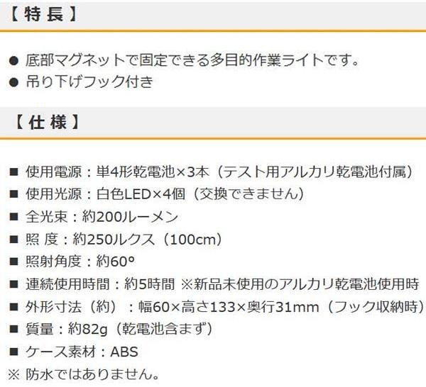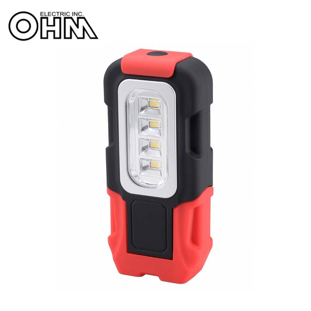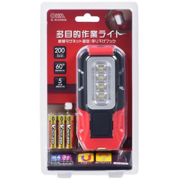 マグネットで固定したり、フックで吊り下げて使ったりと、様々な場所で活躍するLED多目的作業ライトです。 生産国:中国 ※サプライヤー直送品 ご注文後2~3営業日後の出荷となります【商品名】OHM LED多目的作業ライト 単4×3本付 200ルーメン SL-W200R6B