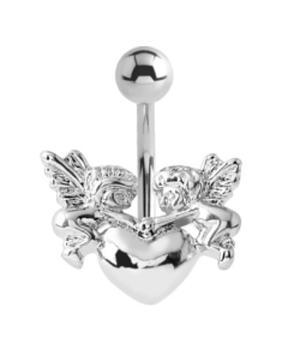 Silver Heart w/Cherubs angels Belly button navel Ring piercing bar body jewelry 14g