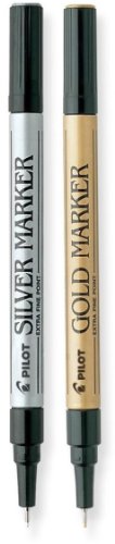 Pilot Gold and Silver Metallic Permanent Paint Markers, Extra Fine Point, Set of 2 Markers (41400)