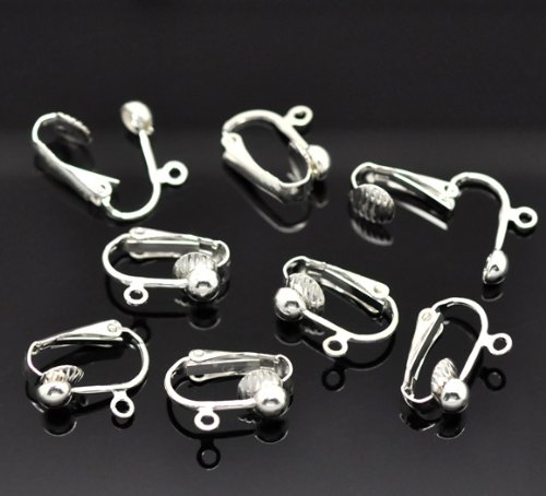 PEPPERLONELY Brand, Silver Plated Clip on Earring Findings Standard Half Ball with Easy Open Loop for Easy Converting From Standard Ear Wires, Sold Per Pack of 24