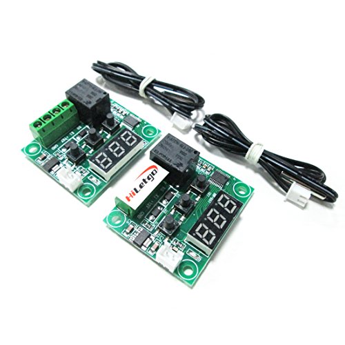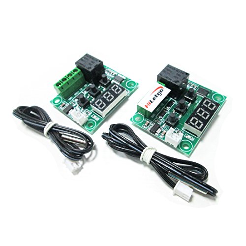 HiLetgo 2PCS W1209 12V DC Digital Temperature Controller Board Micro Digital Thermostat -50-110°C Electronic Temperature Temp Control Module Switch with 10A One-channel Relay and Waterproof