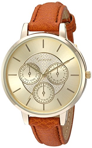 Geneva Women's GV/1012CHBN Gold-Tone and Brown Strap Watch