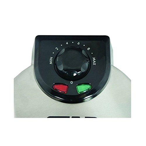 Regulating thermostat and weighted lid ensure perfect and even browning
