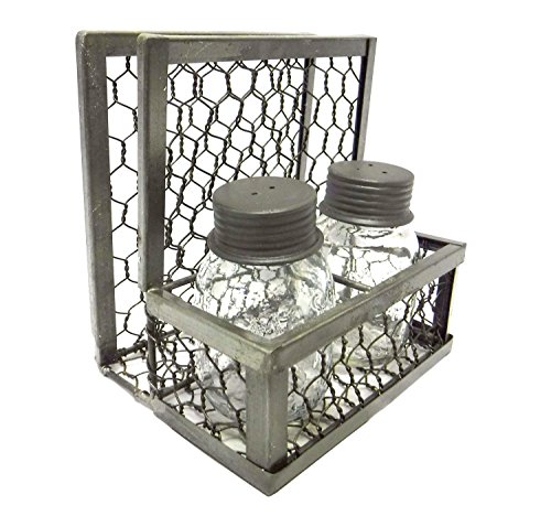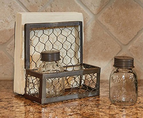 Chicken Wire Napkin Holder with Mason Jar Salt & Pepper Shakers